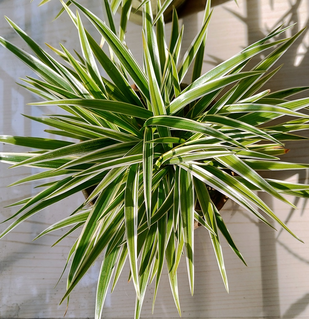 1. Appearance: Spider plants have long, arching leaves that are green with white stripes. The plant produces long, wiry stems that bear small plantlets or “pups” at their ends, giving the appearance of spiders hanging from the mother plant.